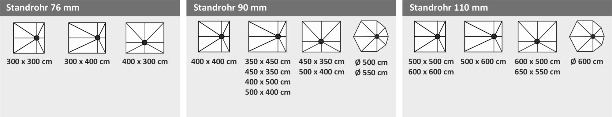 Standrohr nach RAL Classic Farbkarte, pulverbeschichtet, GFK-Tragarme in lichtgrau, Kunststoffteile in weiß oder grau