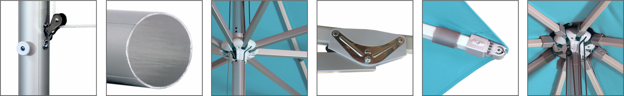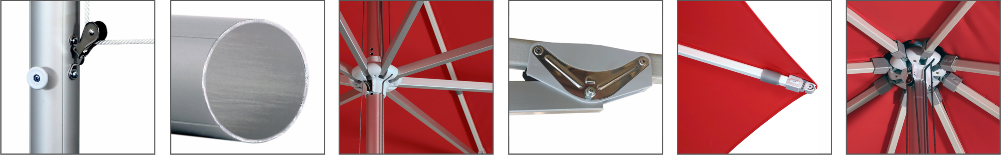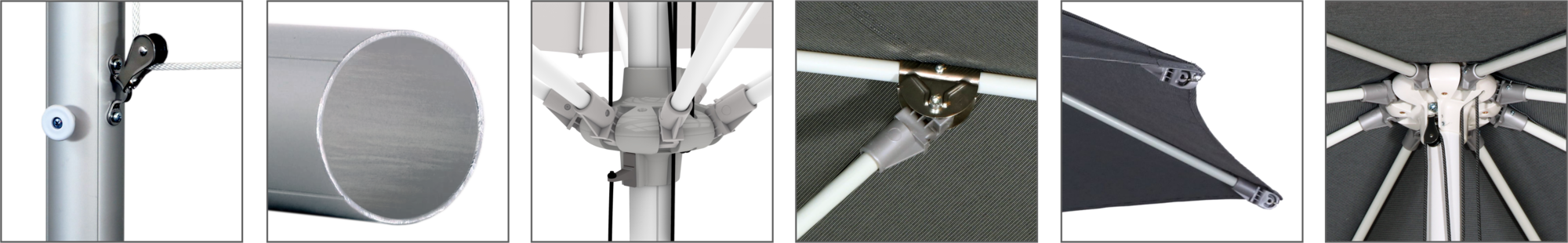 Die Glasfiber-Tragarme bieten eine stabile Unterstützung für das Schirmdach und sind nahezu unzerbrechlich.
